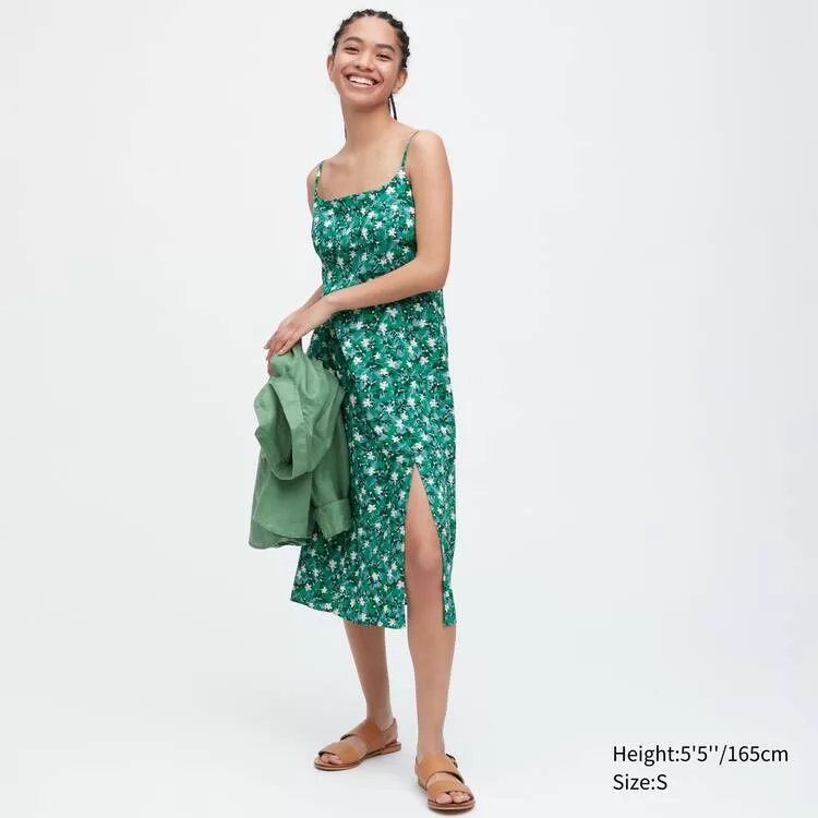Home Uniqlo Women Uniqlo Printed Front Slit Camisole Dress Women Green