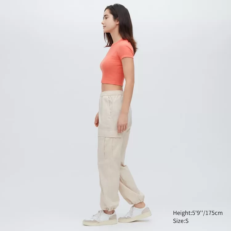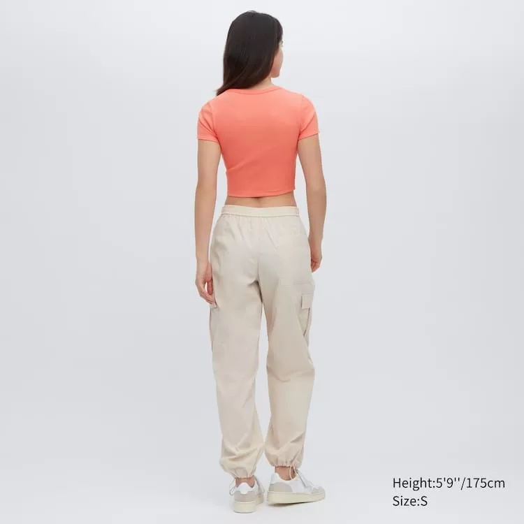 Updated fit for a more compact style. Our sleek ribbed T-shirt in a cropped length.
