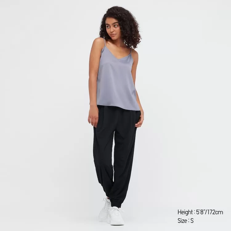Elegant sheen and drape. The depth of the neck adjusts with straps.