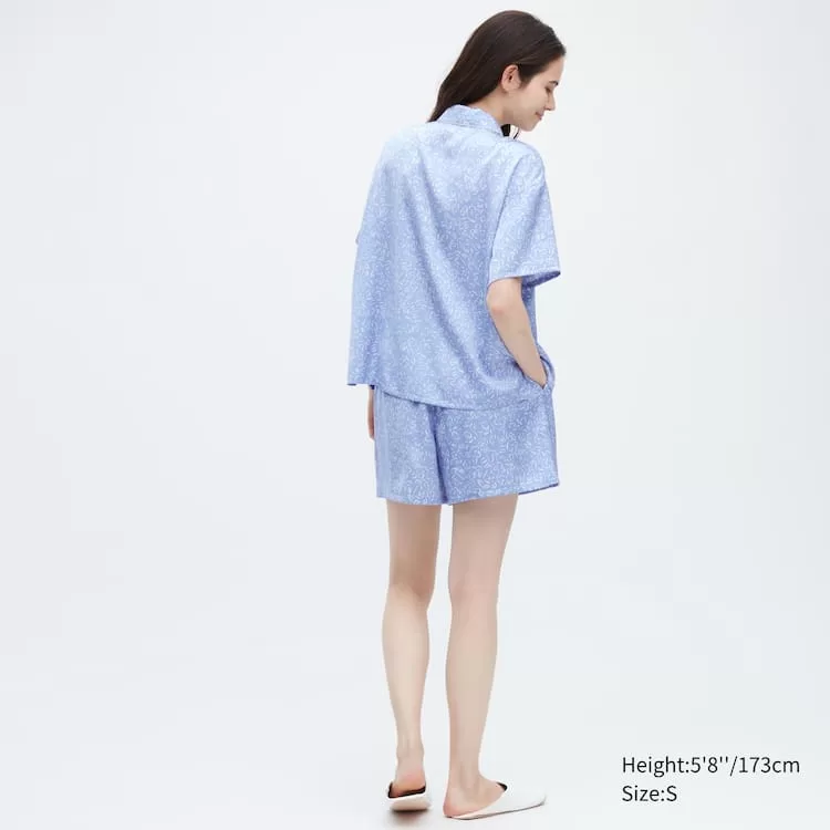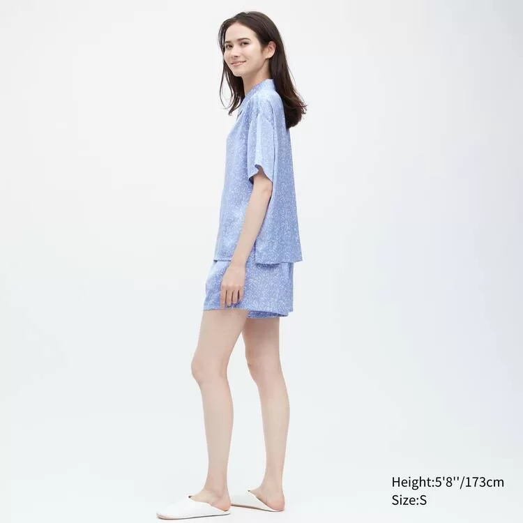 Uniqlo Satin Printed Pajamas (Short Sleeve) Women’s Homewear Blue