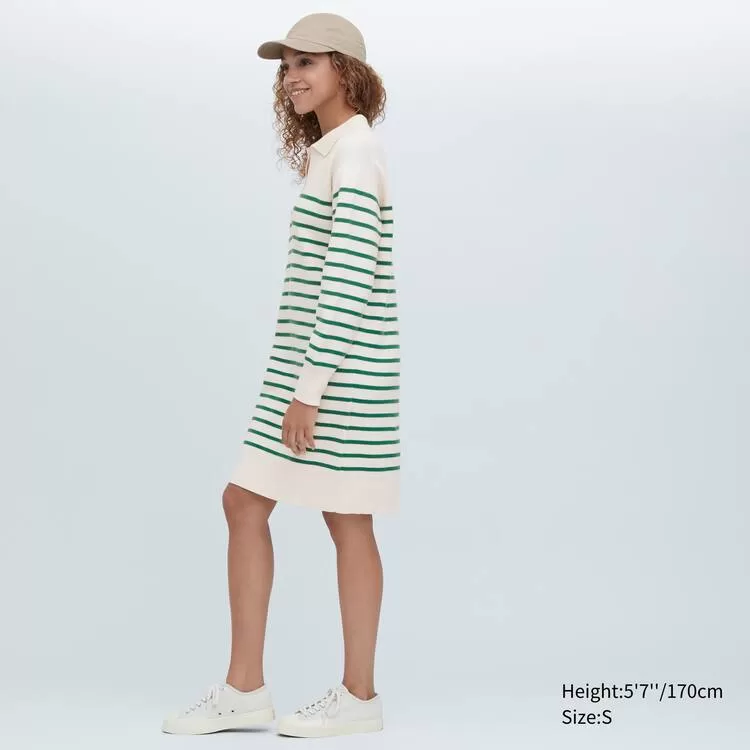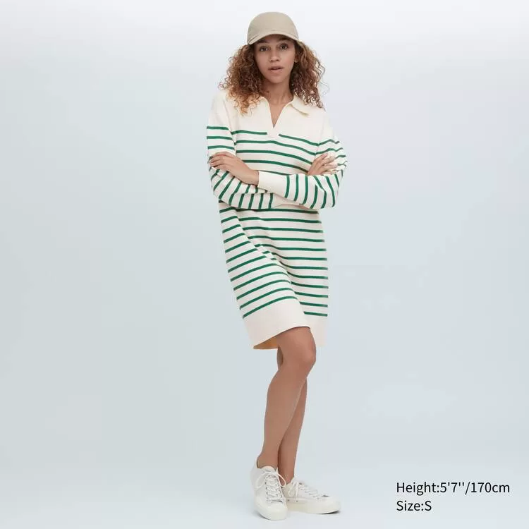 A thick, yet lightweight knit dress made with 100% cotton. With a skipper collar for a laid-back style.