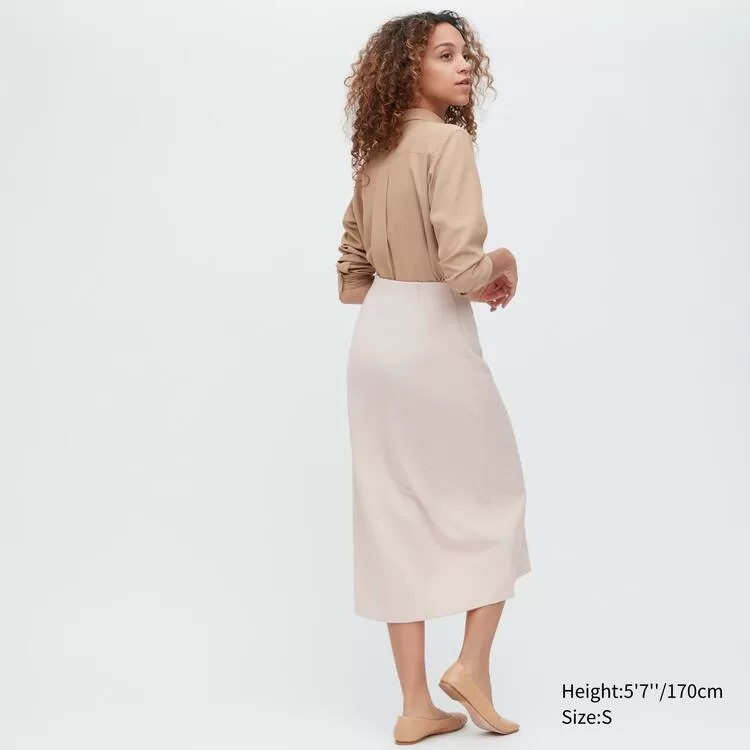 Uniqlo Stretch Double Faced Split Hem Women’s Skirt Beige