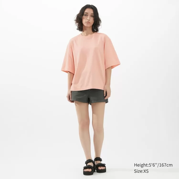 Home Uniqlo Women Uniqlo U Airism Cotton Oversized T-shirt for Women in Pink