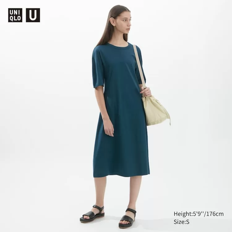 Uniqlo U Airism Cotton Short Sleeved Dress Women Blue