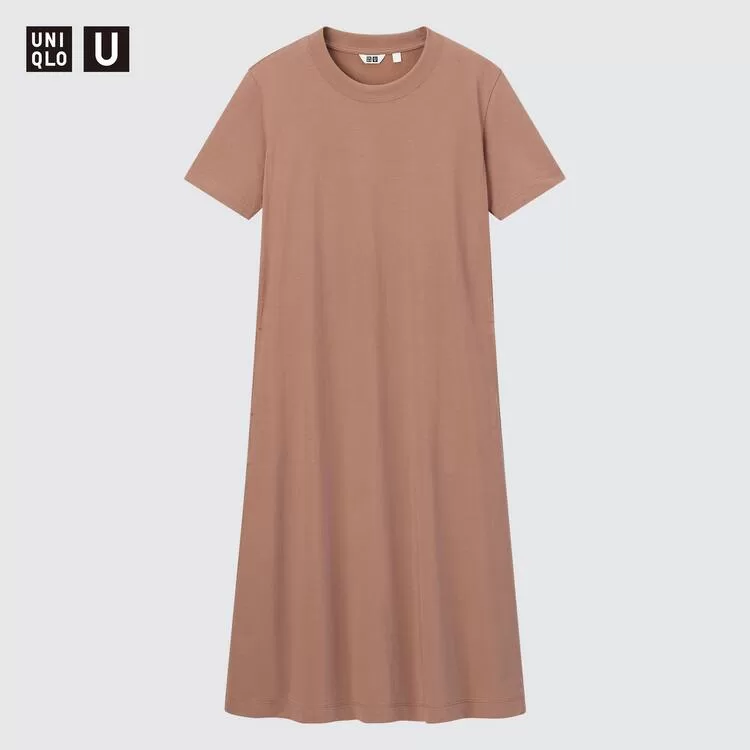 Home Uniqlo Women Uniqlo U Airism Cotton Short Sleeved Longline Flared Dress Women Pink