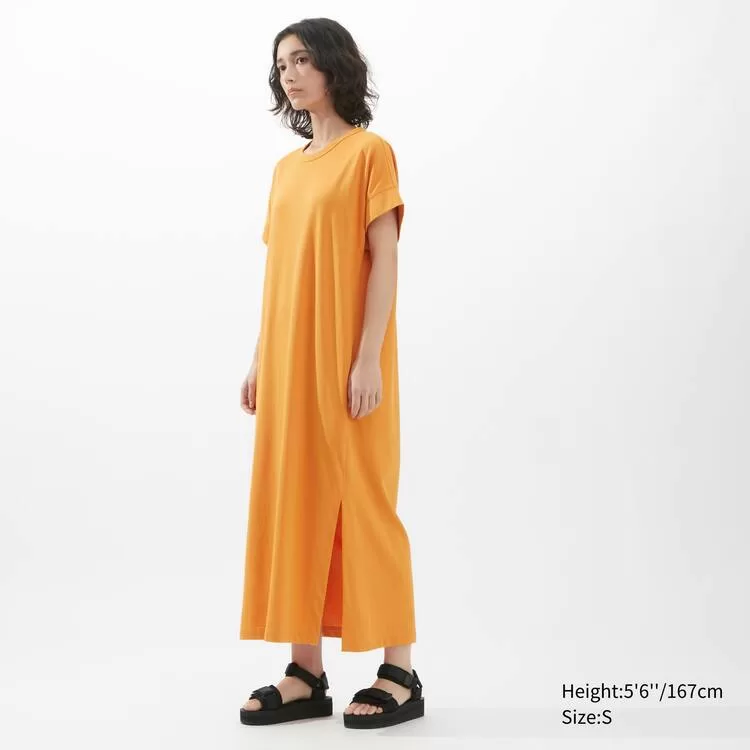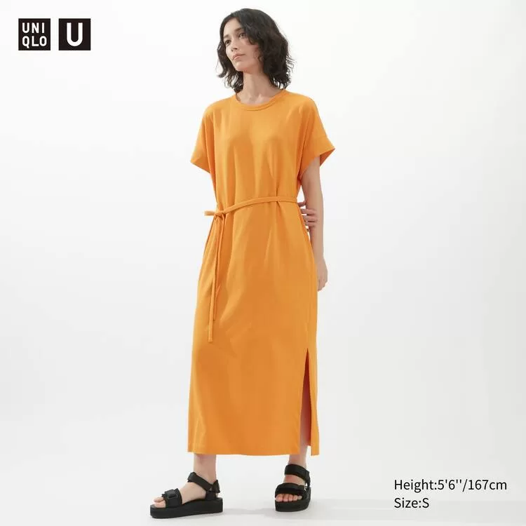 Uniqlo U Airism Cottoned Short Sleeved Dress Women Orange