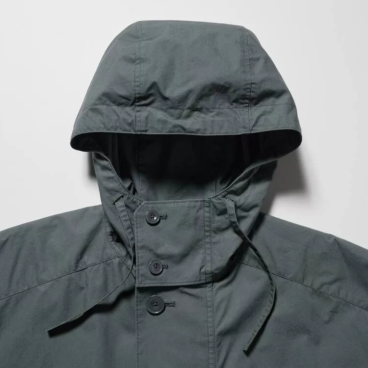 An outdoor-style piece made from cotton canvas. With a hood for casual styling.