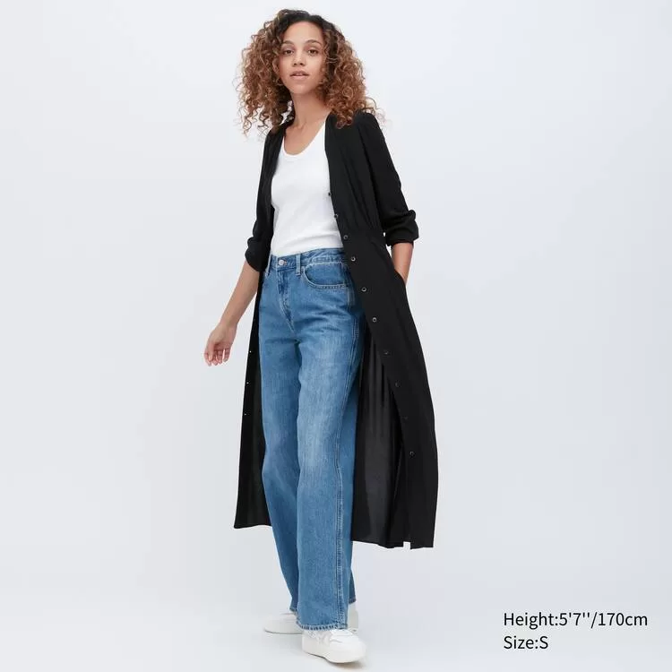 – Front-opening design with buttons in the center and on the cuffs works great as a light outer layer.