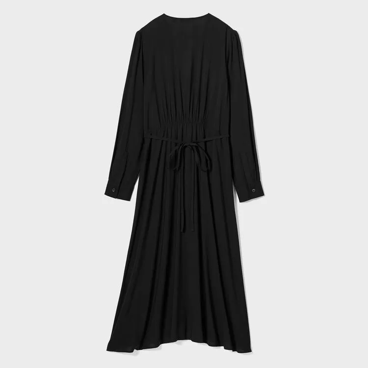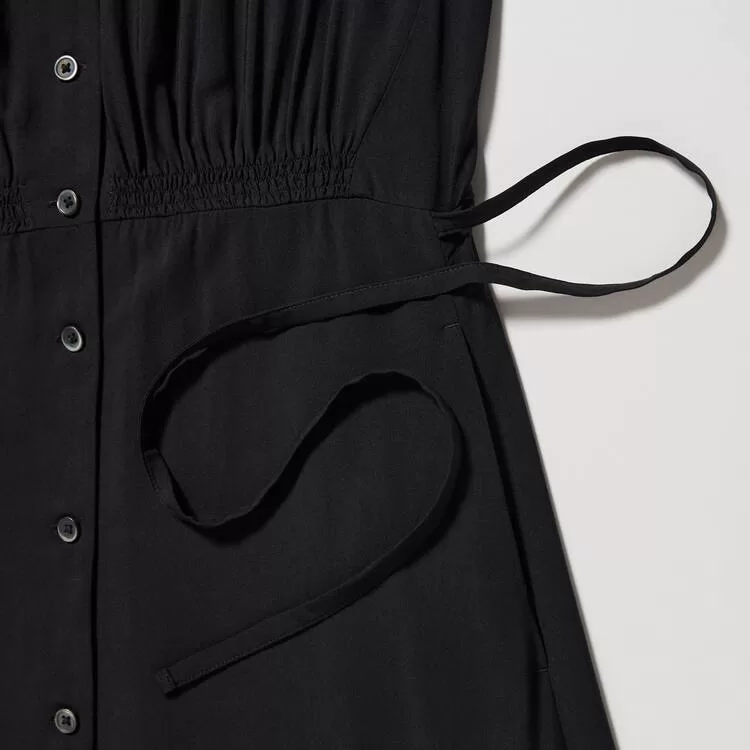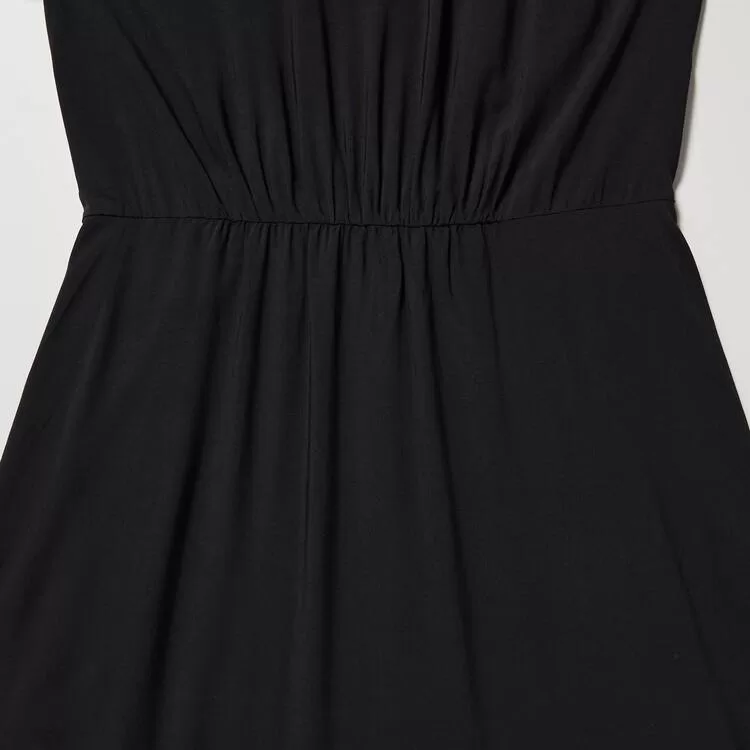 – Fit-and-flare cut, accentuated by gathers at the waist.