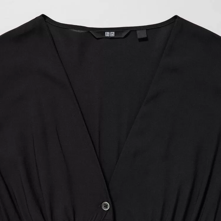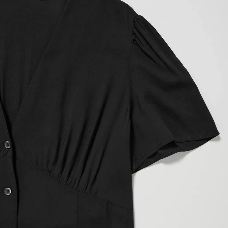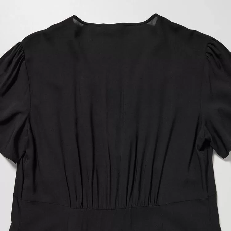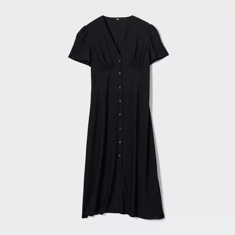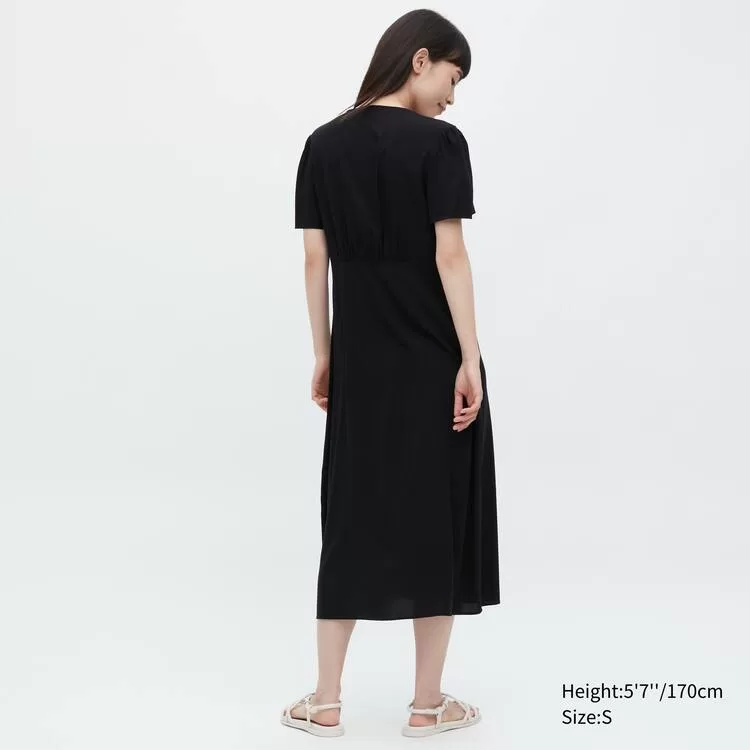 Home Uniqlo Women Uniqlo V Neck Short Sleeved Flared Dress Women Black