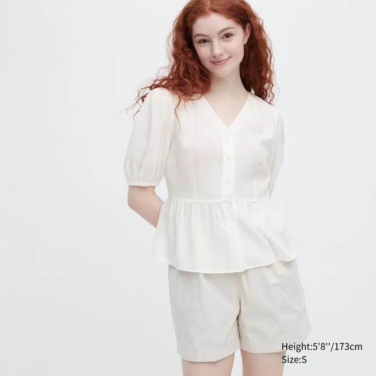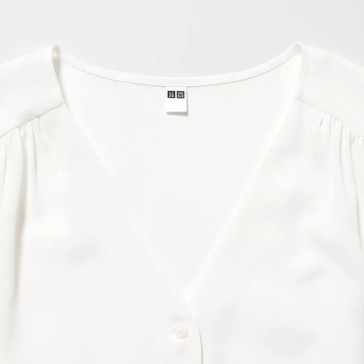Elegant blouse with a flattering V-neck and gathered waist.