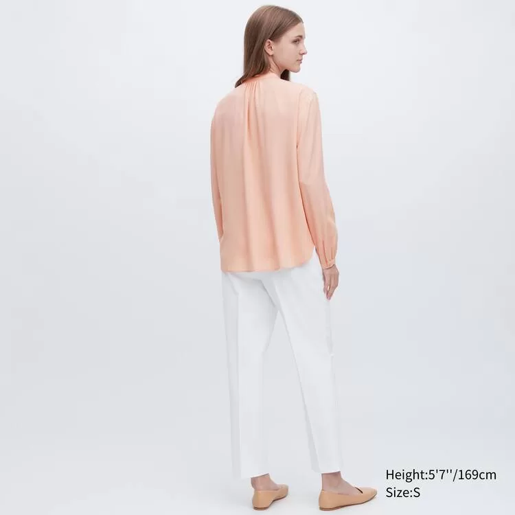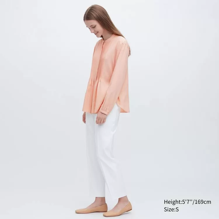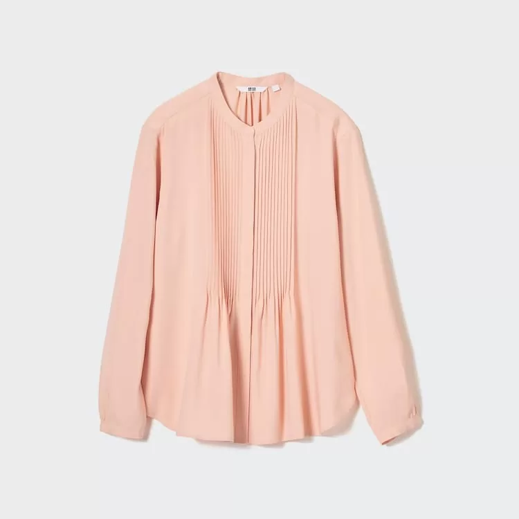 Home Uniqlo Women Uniqlo Viscose Pintucked Long Sleeved Blouses Women Coral