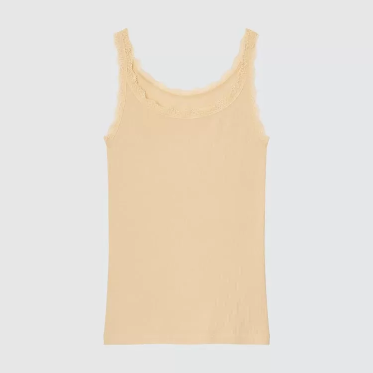 Uniqlo Women’s Cotton Ribbed Lace Sleeveless Vest Yellow