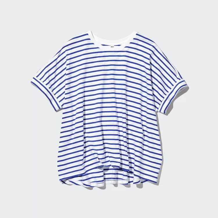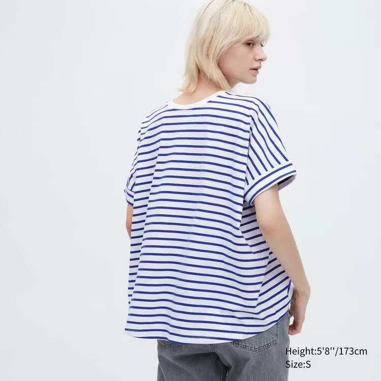 Home Uniqlo Women Uniqlo Women’s Cotton Striped French Sleeve T-Shirt White Blue