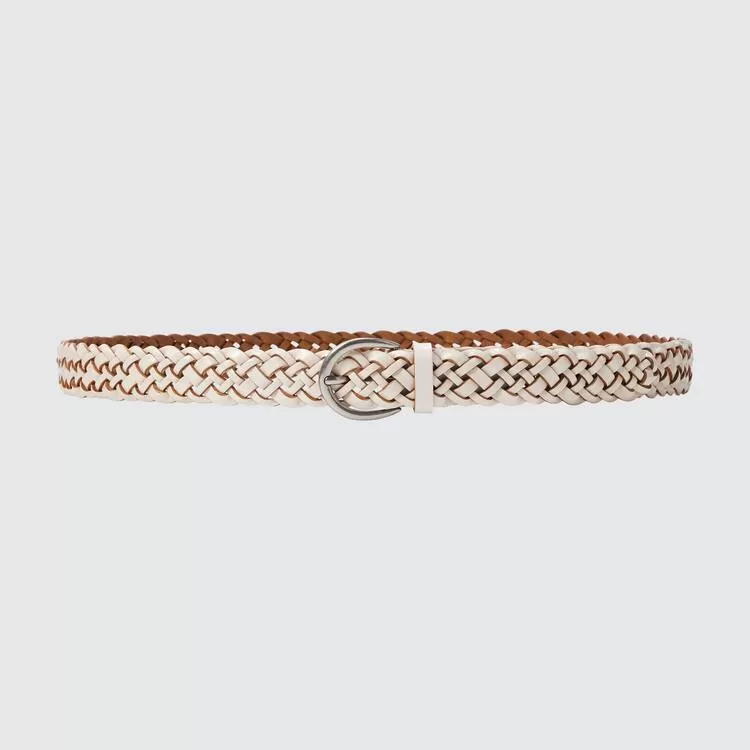A braided belt with a charming rounded buckle. Adjustable to your exact size.