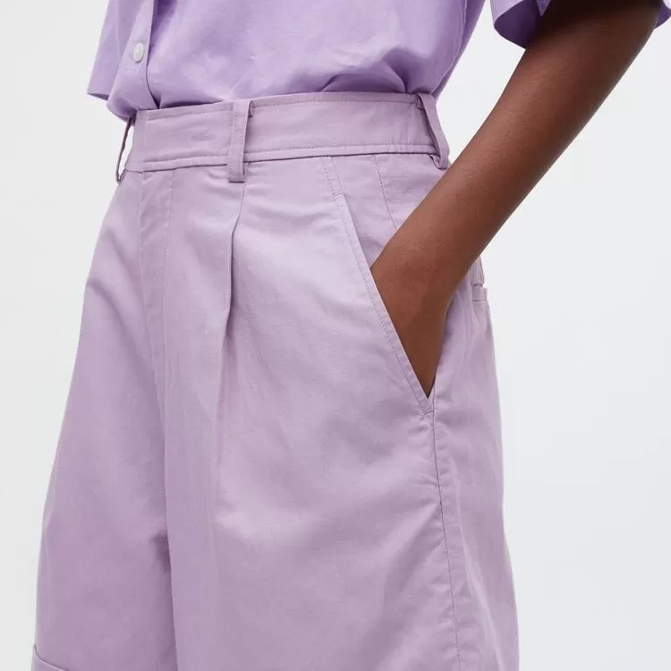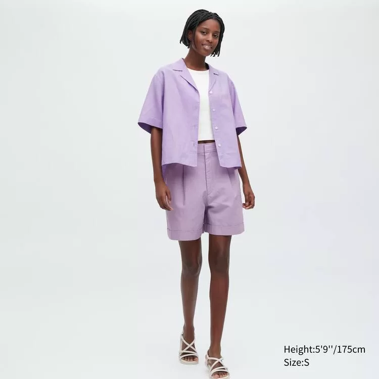 Home Uniqlo Women Uniqlo Women’s Linen Blend High Waisted Shorts Purple