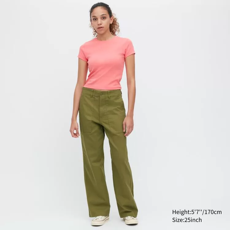 Uniqlo Women’s Wide Leg Baker Pants Olive Green